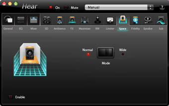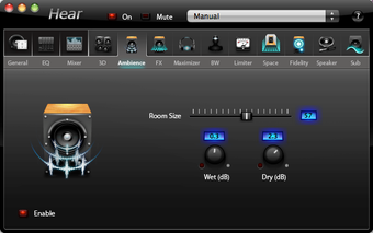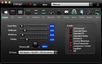 Hear umożliwia modyfikowanie systemowych ustawień dźwięku. Program charakteryzuje się ciemnym, bardzo przejrzystym interfejsem. Osoby niedoświadczone mogą być przerażone ilością funkcji jakie oferuje. Na szczęście Hear posiada bardzo dużo predefiniowanych opcji. Nawet osoby bez zaawansowanej wiedzy mogą polepszyć brzmienie, wybierając ustawienie odpowiednie dla danego typu muzyki, czy filmu.